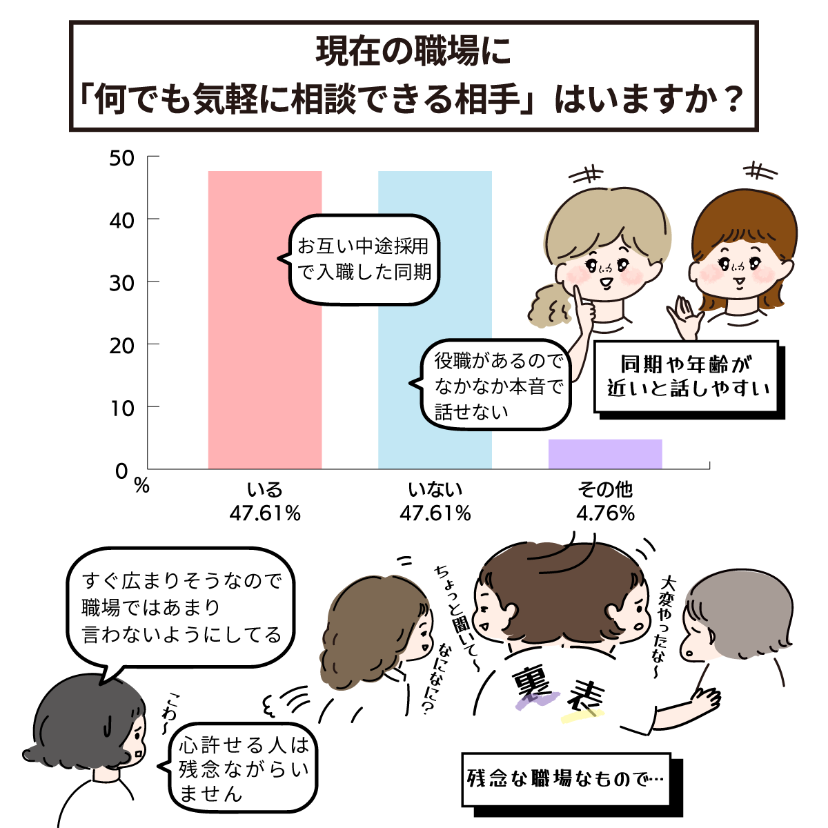 ただ、相談するということは信頼関係が成り立っていないと難しい。今の職場のスタッフへの信頼度は?