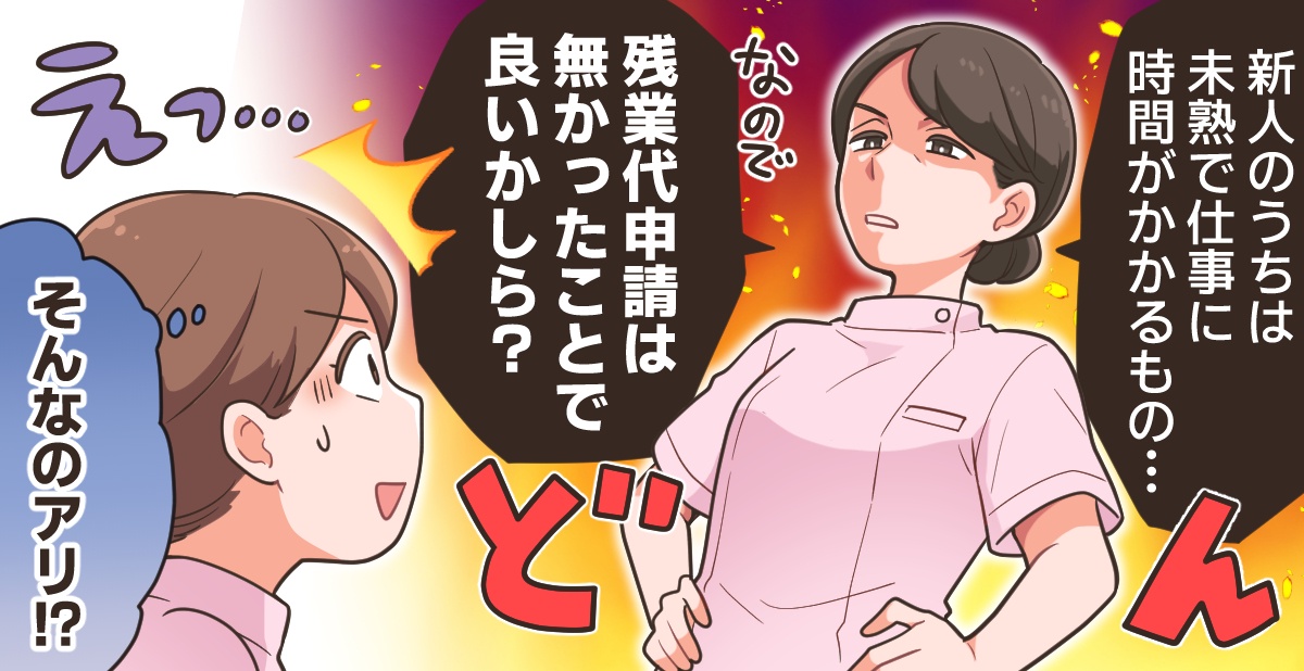 師長から、残ってください、と言われた分しかつかないのが本来の残業です。仕事とは、と言われていますが、残業とは本来は、そういうものなのです。