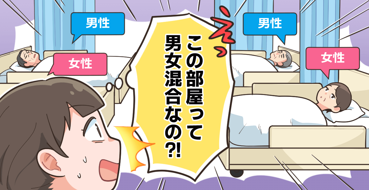 一般内科や療養型の経験しかないですが、観察室以外は大部屋でも混合部屋はなかったです。