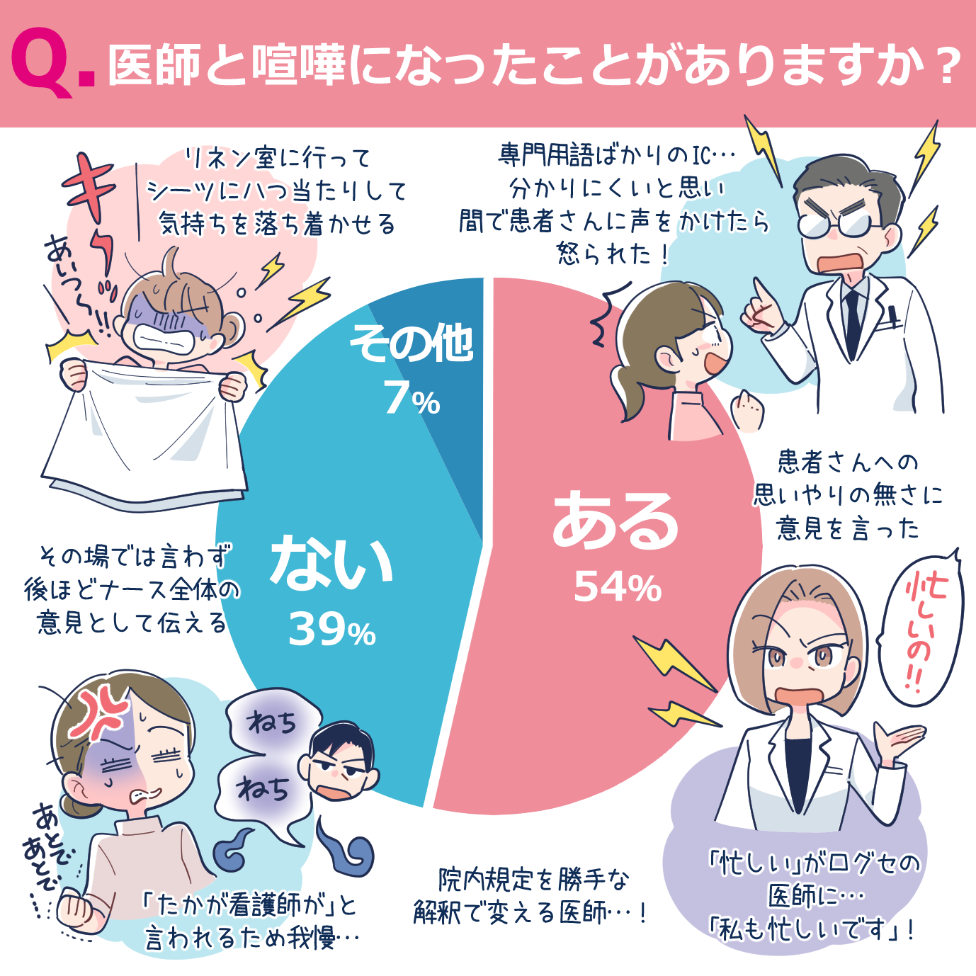 半数以上のナースが医師に意見し、言い争いになるという経験をしている結果に!